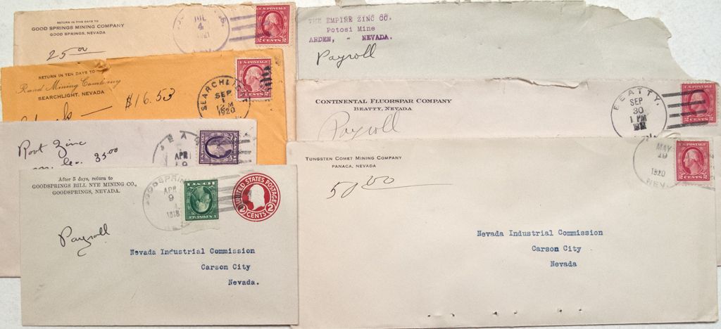 Cancels include Goodsprings, Jean, Beatty, Searchlight, Arden cc (Cover is ripped), and Panaca cc.