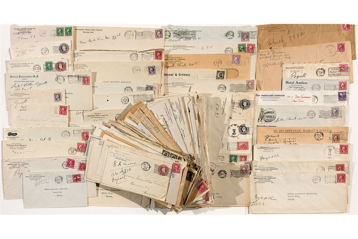 c1920 Lot of about 100 covers for Nevada Mining Companies whose corporate offices where in California. Most have corner advertisements. - HKA#66085