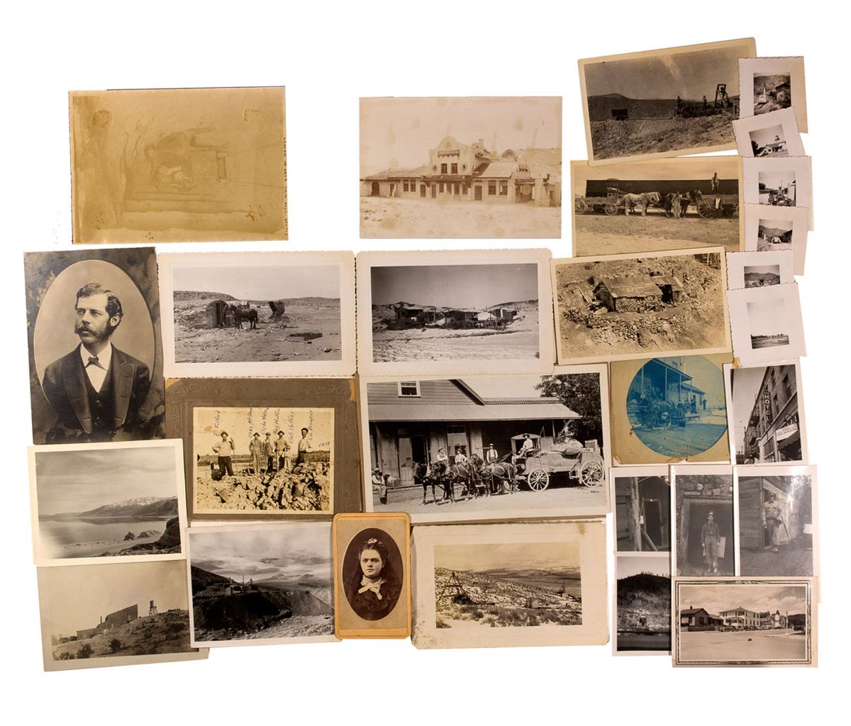 1878, 1890, 1910, 1917 1930 - Lot of 59 images measuring in size from 2” x 1.5” to 7” x 5”. All feature low to medium contrast and good to sharp focus. These images show views of Elko, Pioche, Battle Mountain, and other locations and mining operations throughout the Silver State. While the photos bear some age related wear, they are in very good condition and capture important moments and places in Nevada history. - Maish Collection -61313