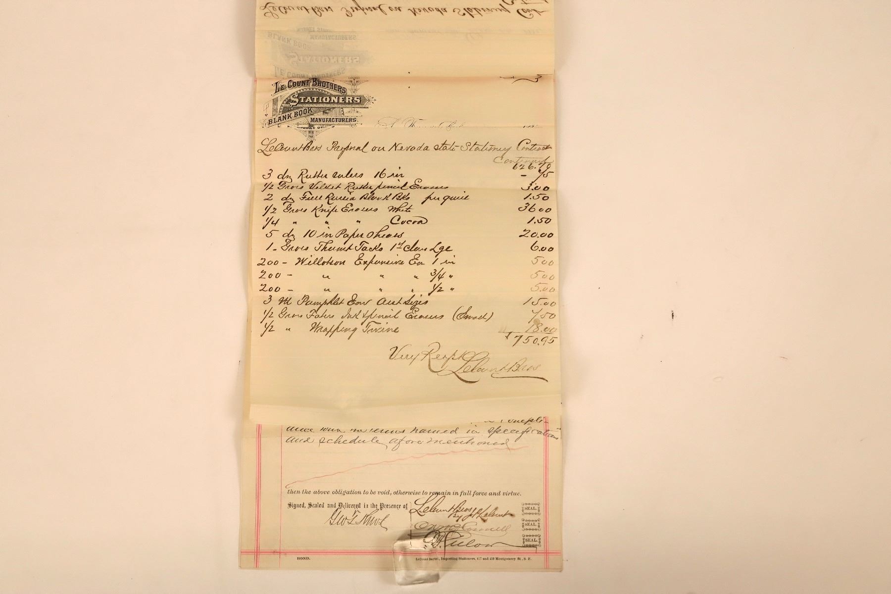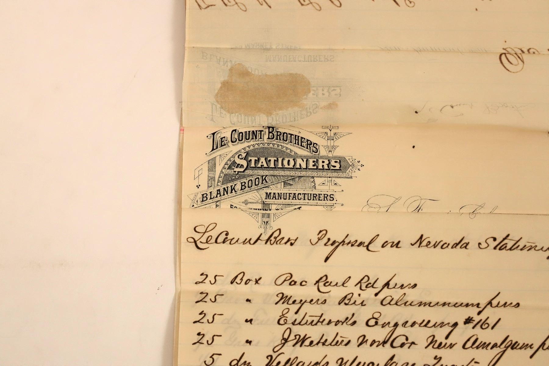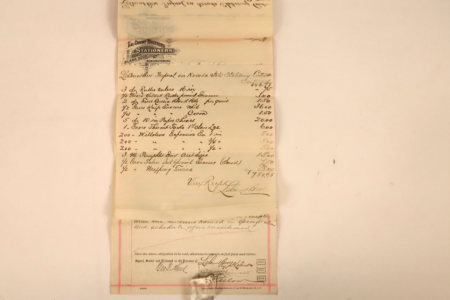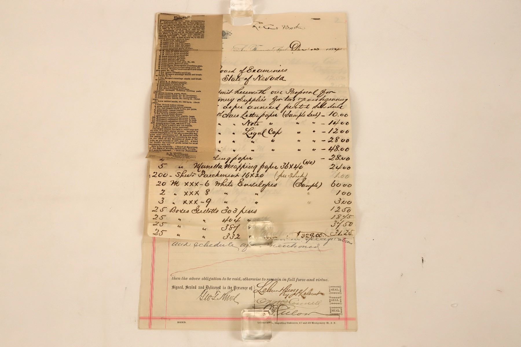 1884 Nevada state proposal and contract for printing supplies-paper, envelopes, etc.