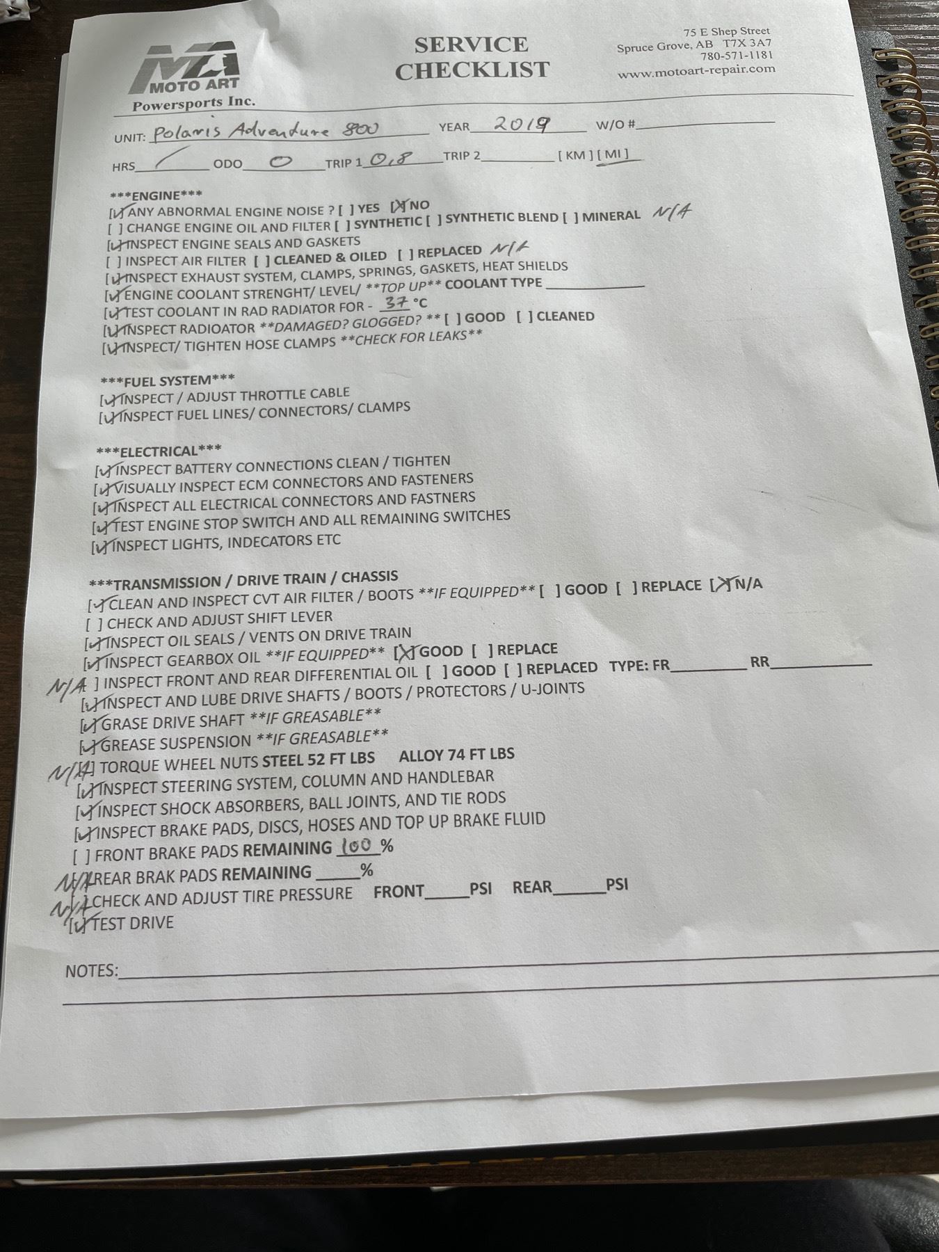 2019 Polaris Titan Adventure 800 - Odometer 0km - Hours 0
