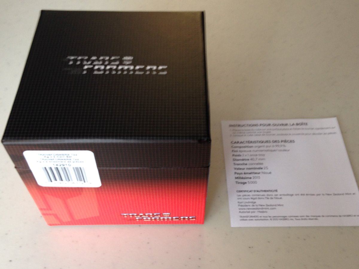 Never Opened, 2 X 1oz Silver Transformer Coin in Special Box New Zealand mint sold by Canadian mint. The letter that tell you how to open the box is in French only.
