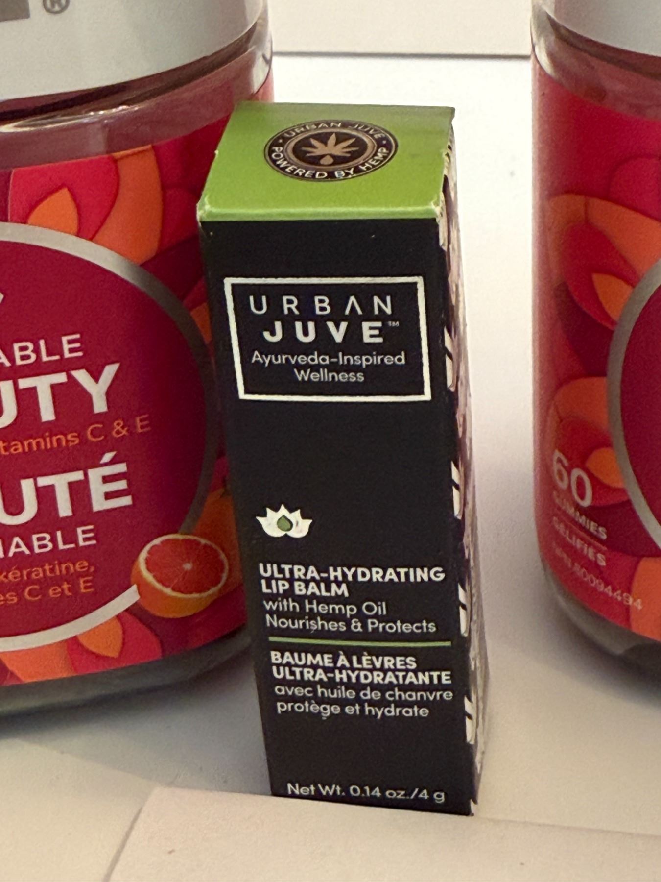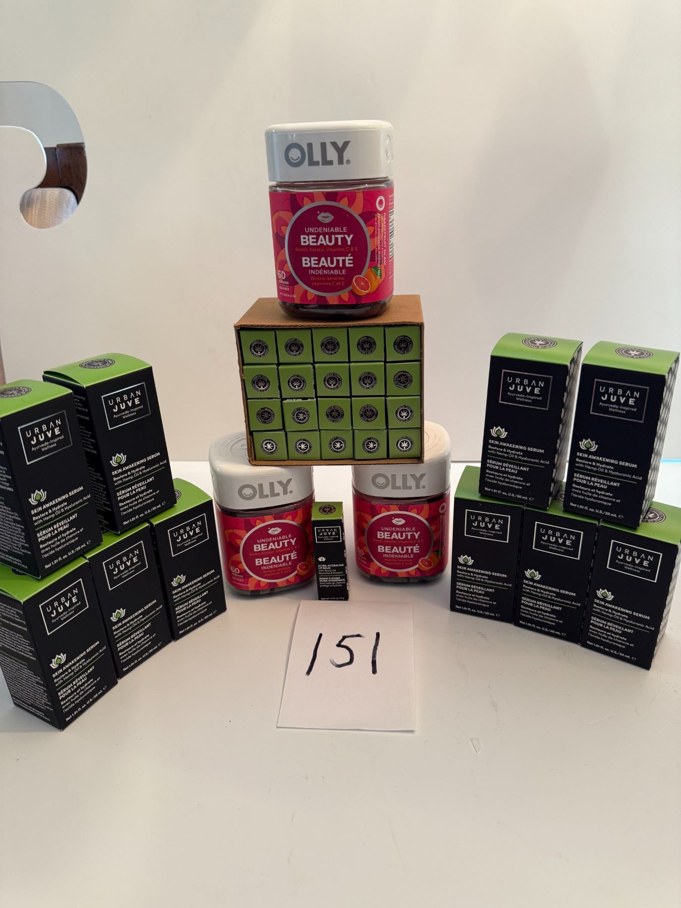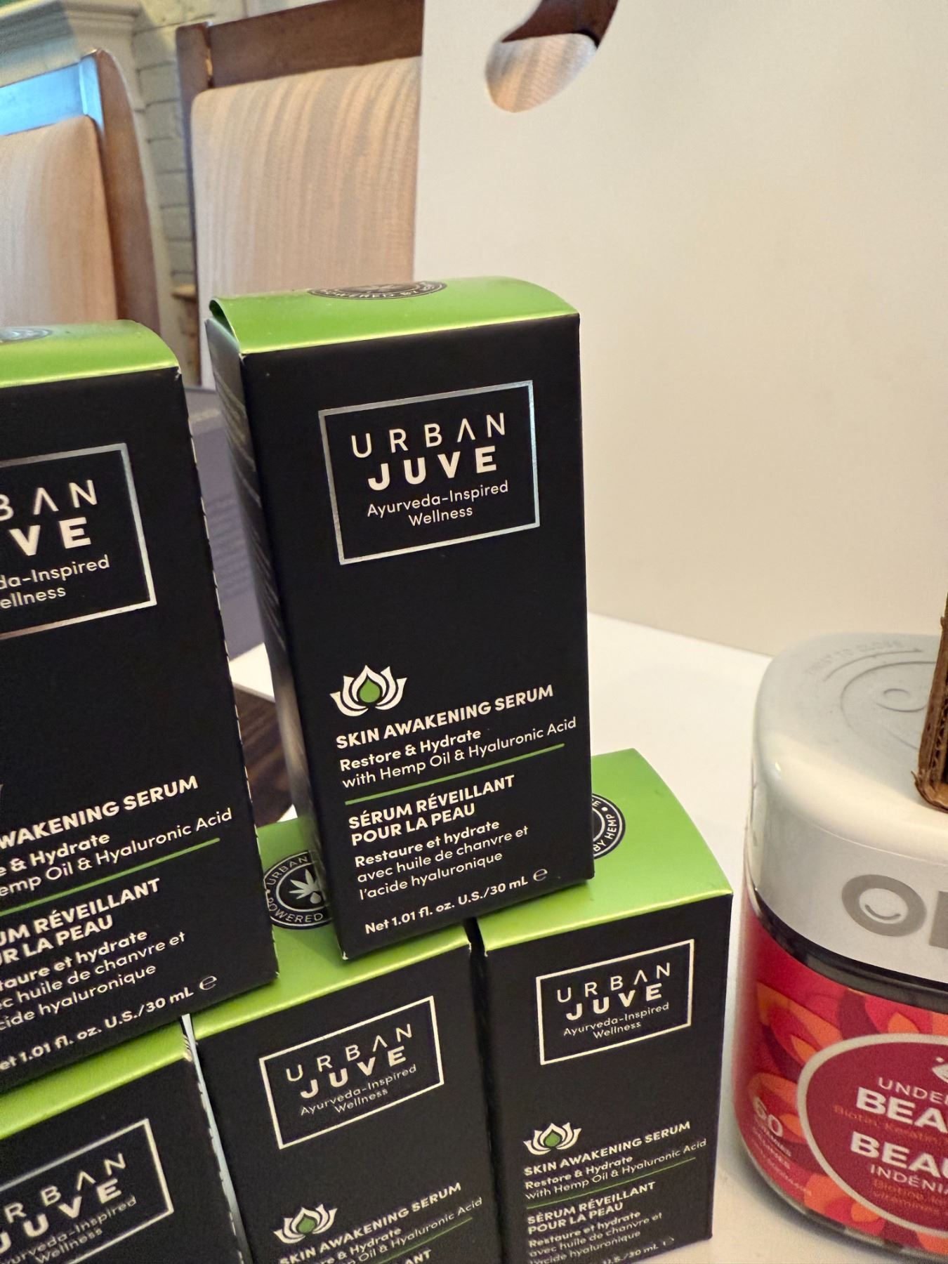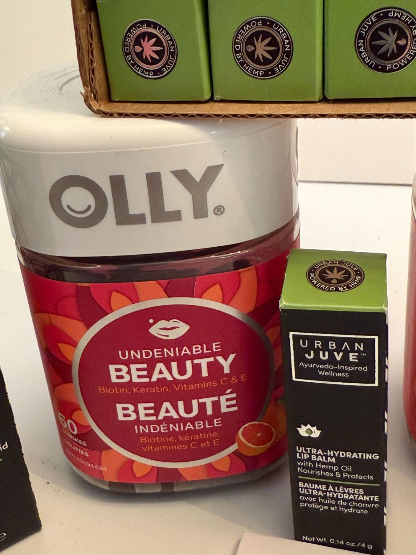 New 10 bottles Urban Juve skin Awakening Serum ( restore & hydrate with Hemp Oil & Hyaluronic Acid, 20 units of Urban JUVE Ultra-Hydrating Lip Balm, excellent for travels, 3 Bottles OLLY Undeniable 60 gummies vitamins C & D