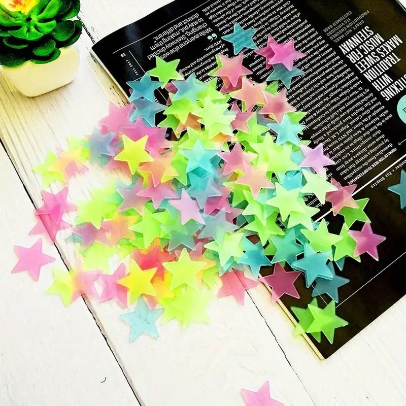 New | 100 Pieces of Multi-Coloured Glow In The Dark Stars | Comes with Adhesive Stickers for Walls, Ceailing, Outdoors Etc | On Choice