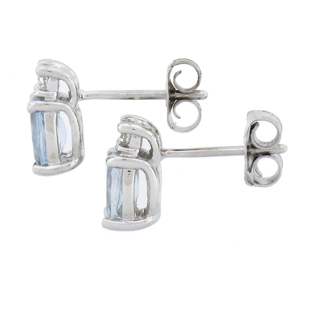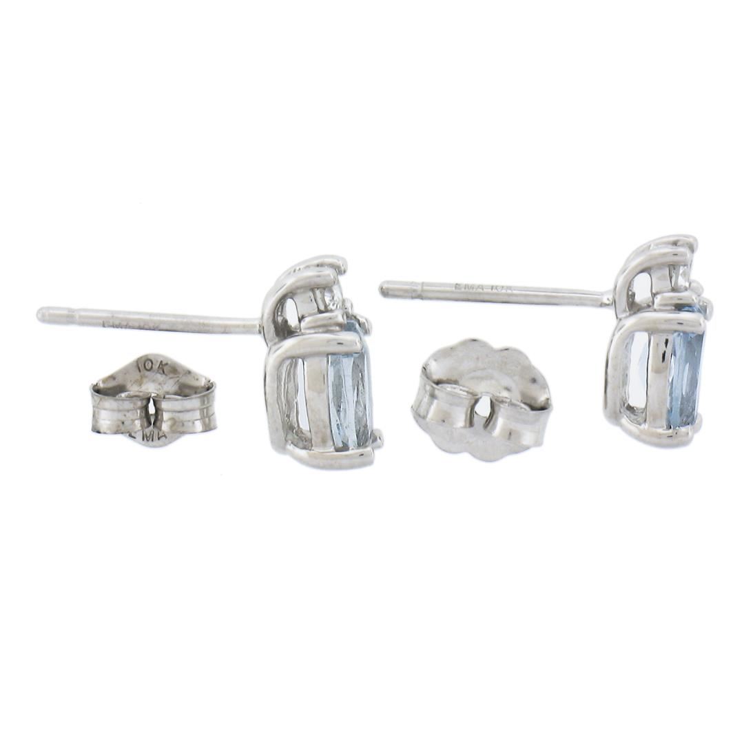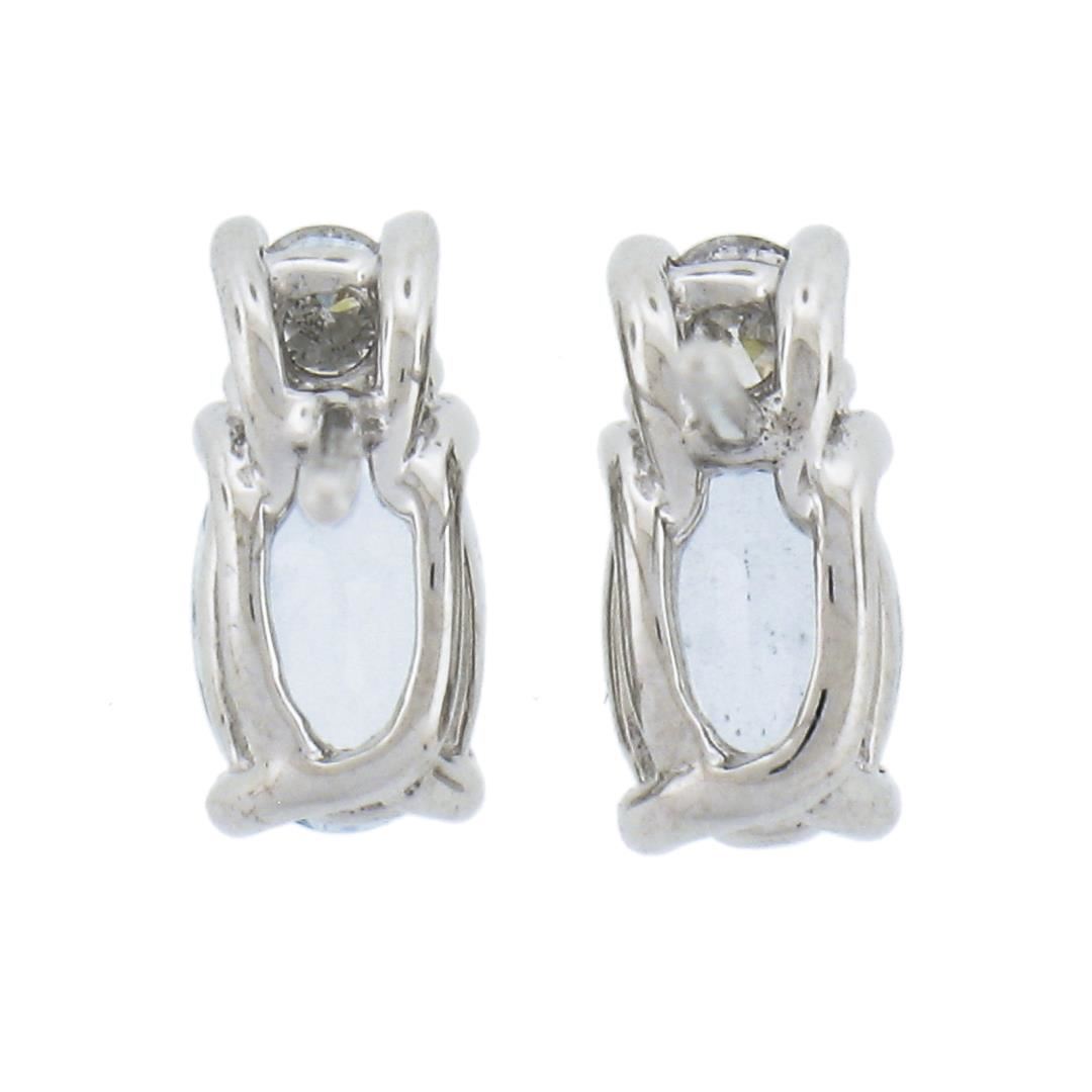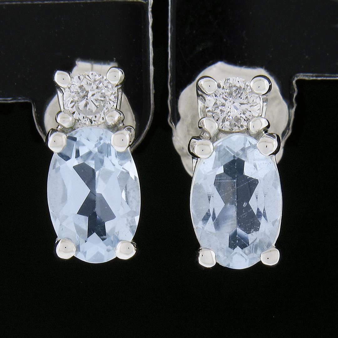 New 10K White Gold 0.90 ctw Prong Set Oval Aquamarine & Diamonds Stud Earrings