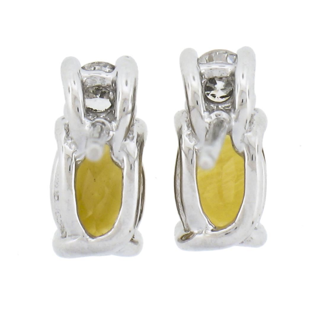 A new solid 10k white gold stud earrings, with 2 oval cut natural citrines (0.90ctw ), and 2 round cut natural diamonds (G/H - SI1/SI2 ; 0.10ctw). The earrings measure approximately 8.7x4.1mm and weigh a total of 1.1 grams.