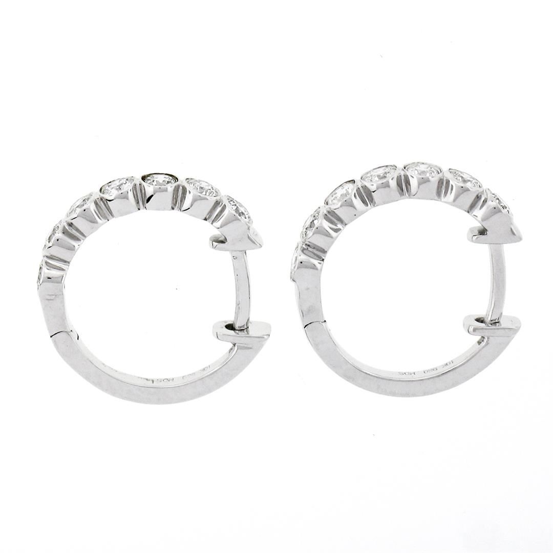 New 10K White Gold .49 ctw Round Brilliant Bezel Set Diamond Hoop Huggie Earring