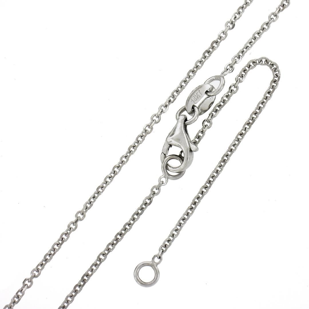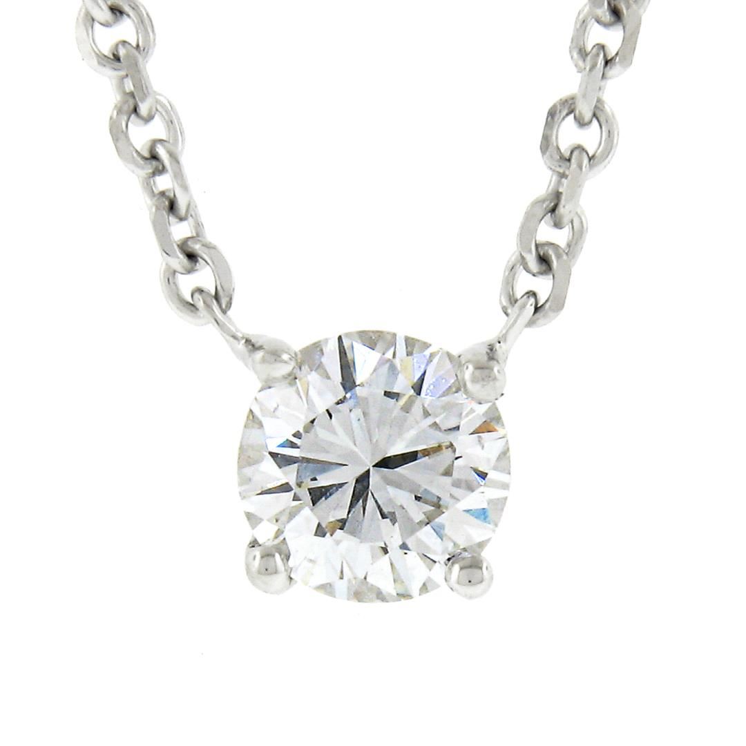 A new solid 14k white gold solitaire pendant necklace, with 1 round cut natural diamond (H - VS1/VS2 ; 0.33ct). Adjustable at 16 or 18 inch cable link chain, 2.38 grams total weight, pendant measures 5.4mm.