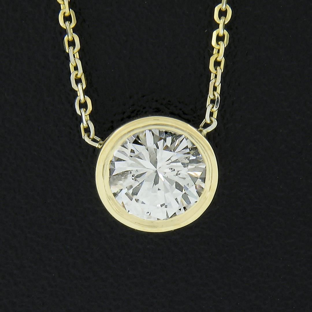 New 14K Gold .35ct Round Brilliant Diamond Solitaire Pendant w/ Adjustable Chain