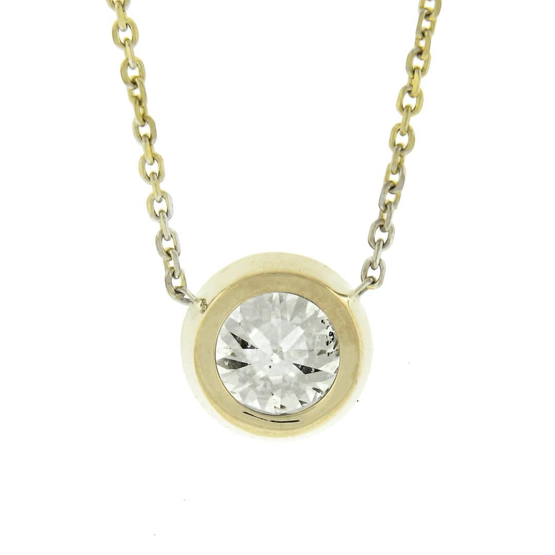 New 14K Gold .35 ctw Round Brilliant Diamond Solitaire Pendant w/ Adjustable Cha