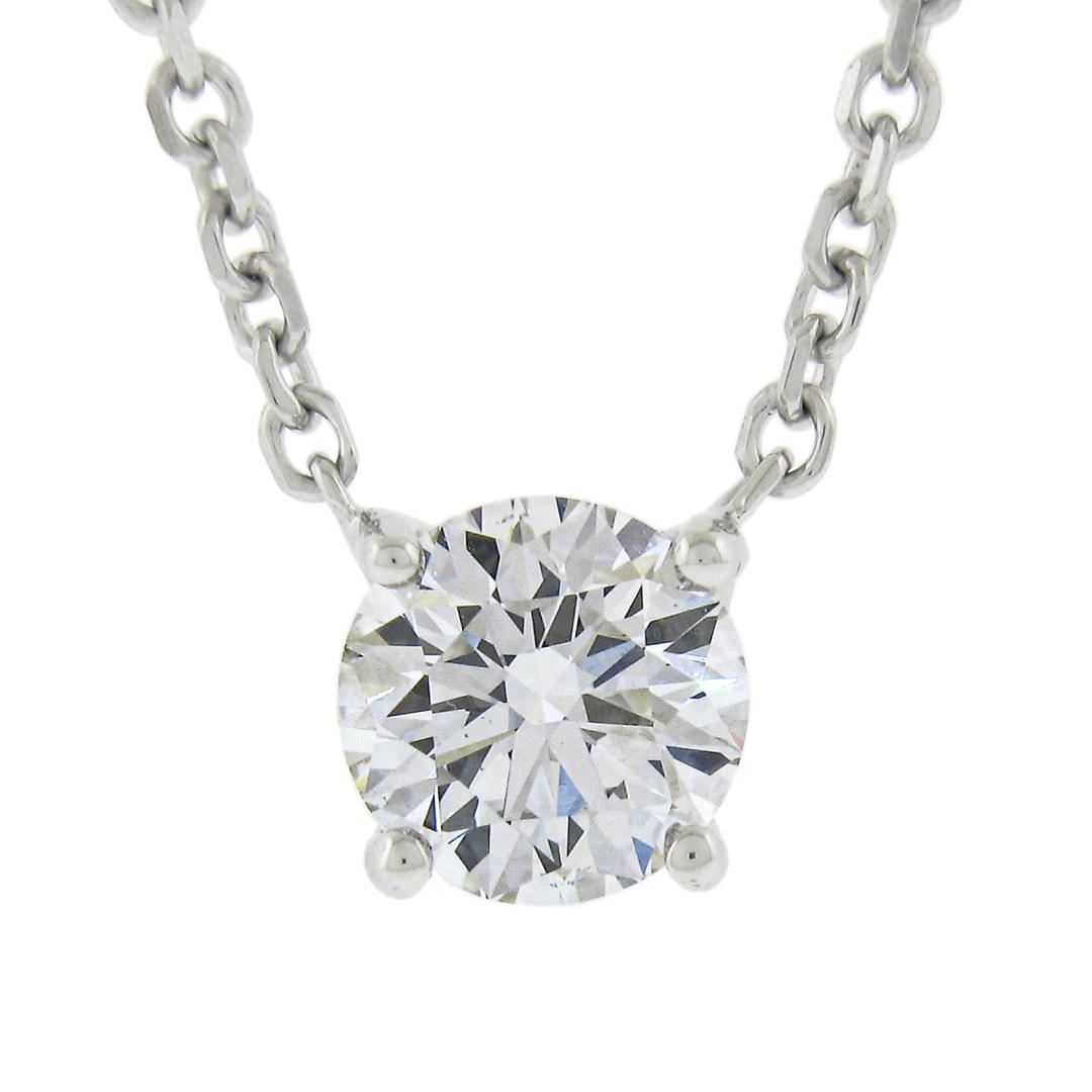New 14K Gold .47ct Round Brilliant Diamond Solitaire Pendant w/ Adjustable Chain