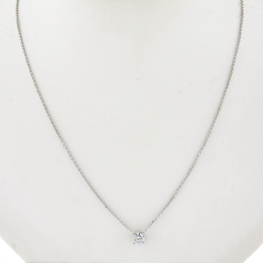 New 14K Gold .47ct Round Brilliant Diamond Solitaire Pendant w/ Adjustable Chain