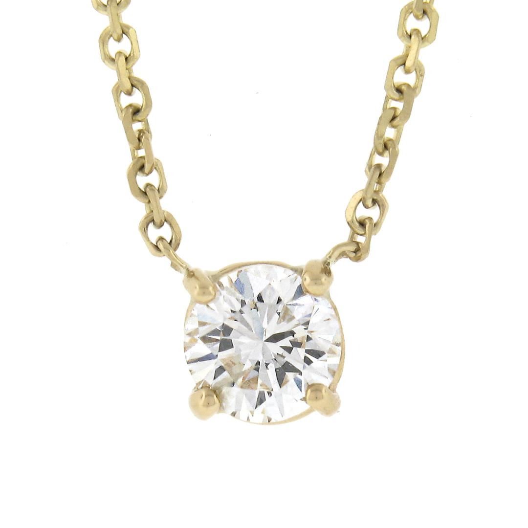 New 14K Gold .49 ctw Round Brilliant Diamond Solitaire Pendant w/ Adjustable Cha