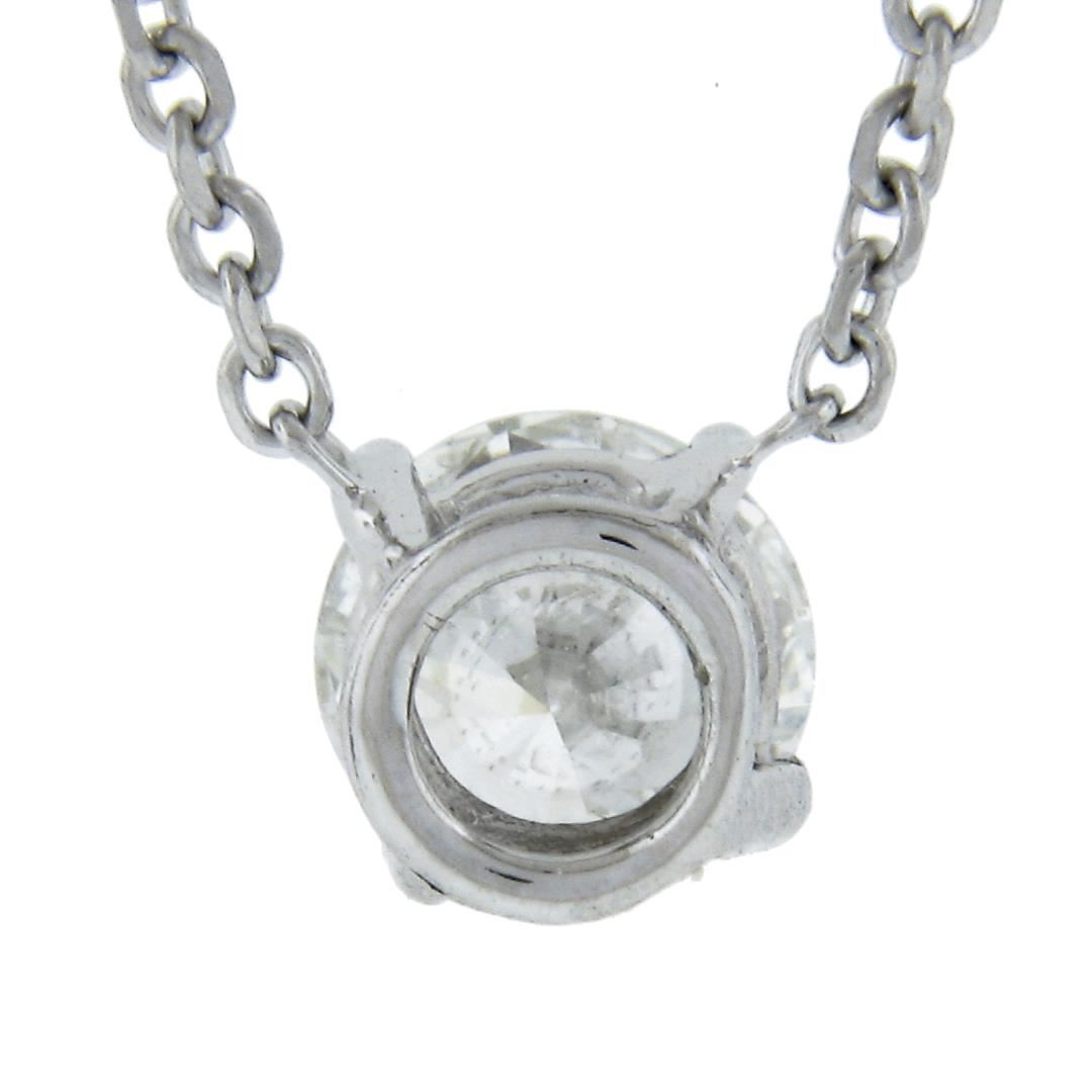 A new solid 14k white gold solitaire pendant necklace, with 1 round cut natural diamond (G- SI1 ; 0.55ct). Adjustable at 16 or 18 inch cable link chain,2.41 grams total weight, pendant measures 6.4mm.