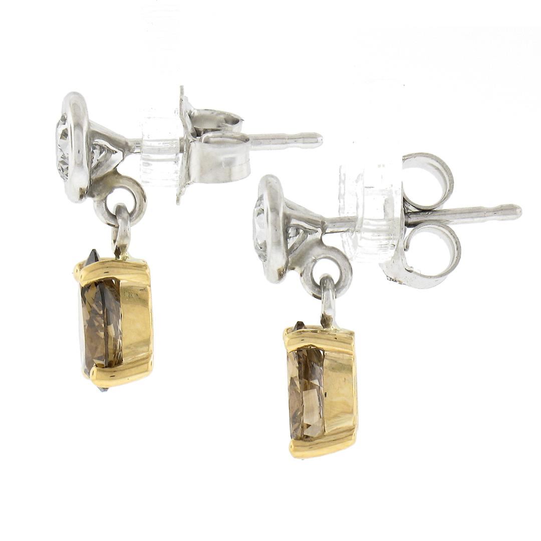 A new solid 14k yellow & white gold teardrop earrings, with 2 round cut natural diamonds (F/G - VS1/VS2 ; 0.41ctw), and 2 pear cut natural fancy brown diamonds (VS1/VS2 ; 1.01ctw). The earrings measure approximately 12.9x5.2mm and weigh a total of 1.50 grams.
