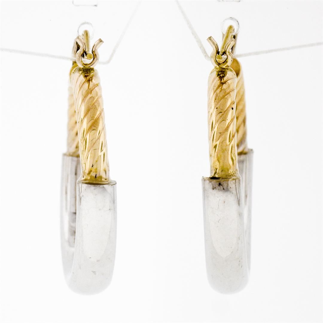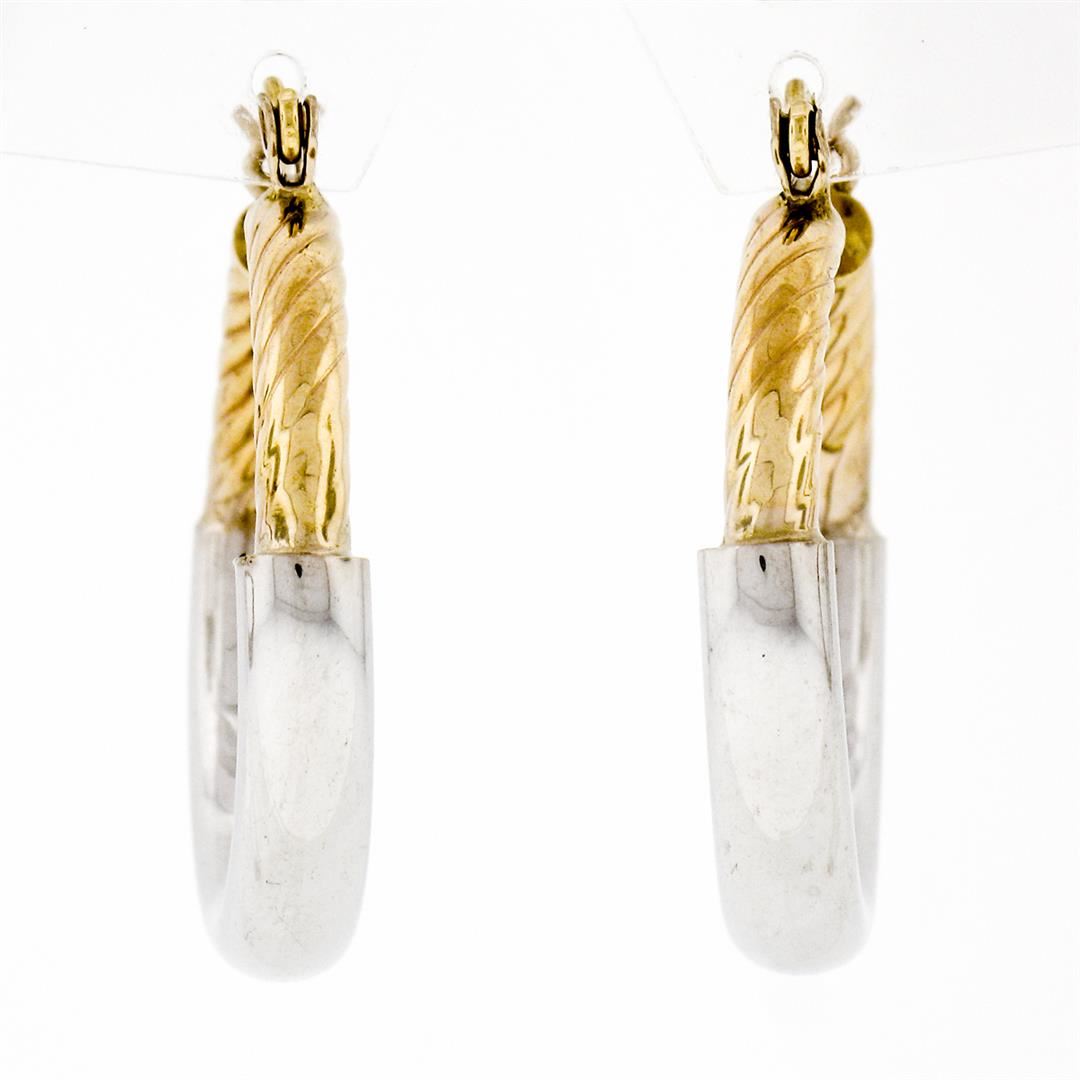 New 14K Yellow & White Gold Plain Puffed Polished Hoop Earrings w/ Twisted Top