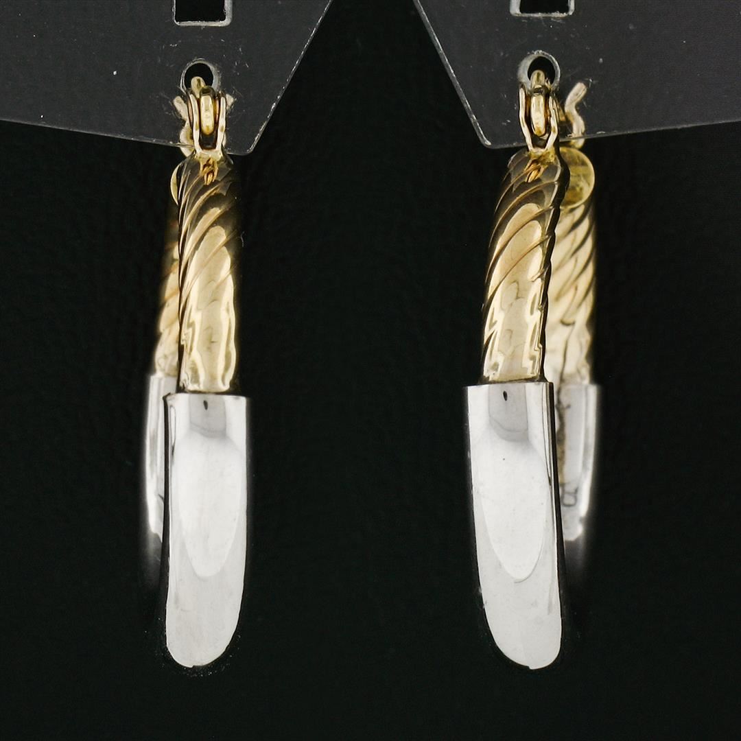 New 14K Yellow & White Gold Plain Puffed Polished Hoop Earrings w/ Twisted Top