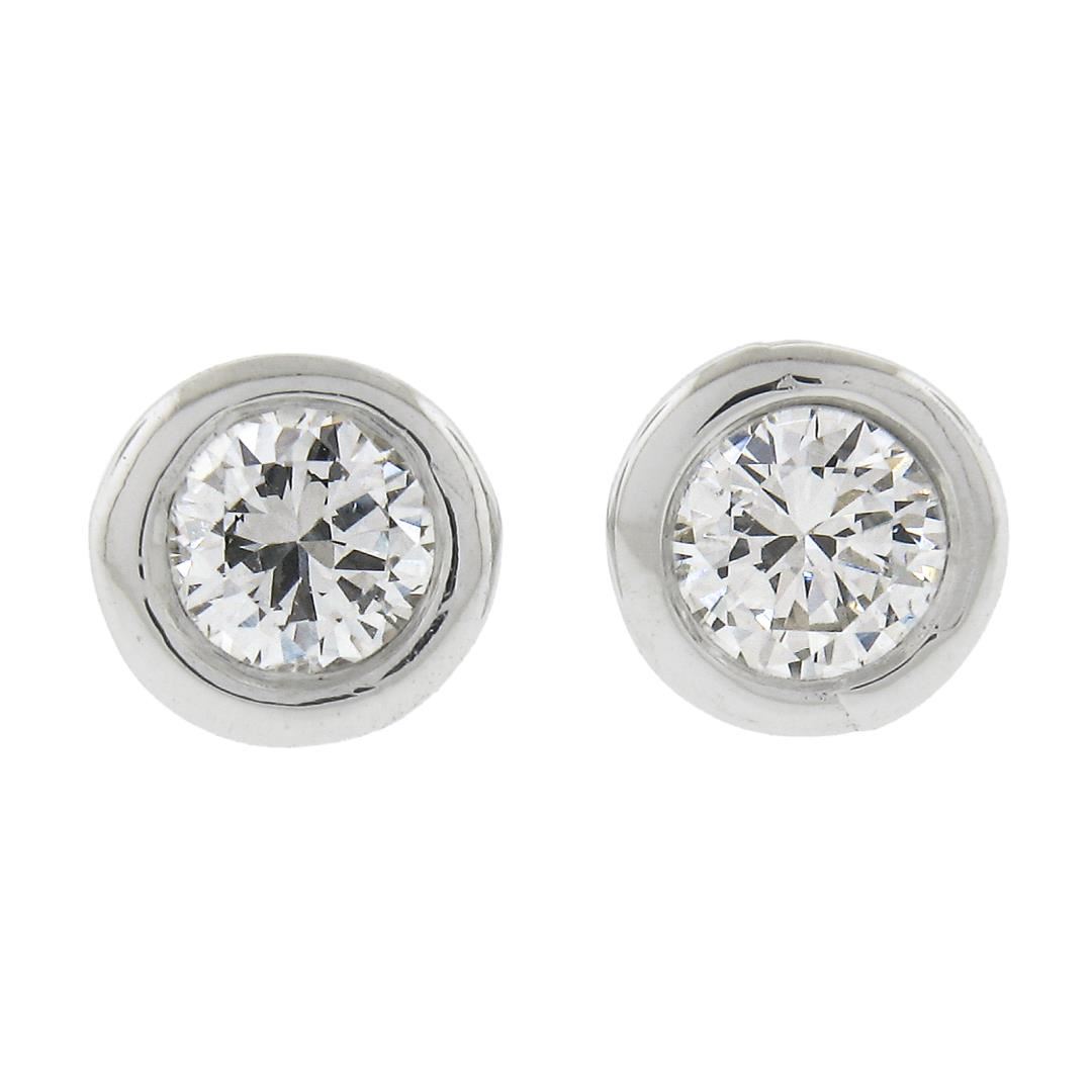 New 14k Gold 0.20ctw Martini Bezel Set Round Brilliant Cut Diamond Stud Earrings
