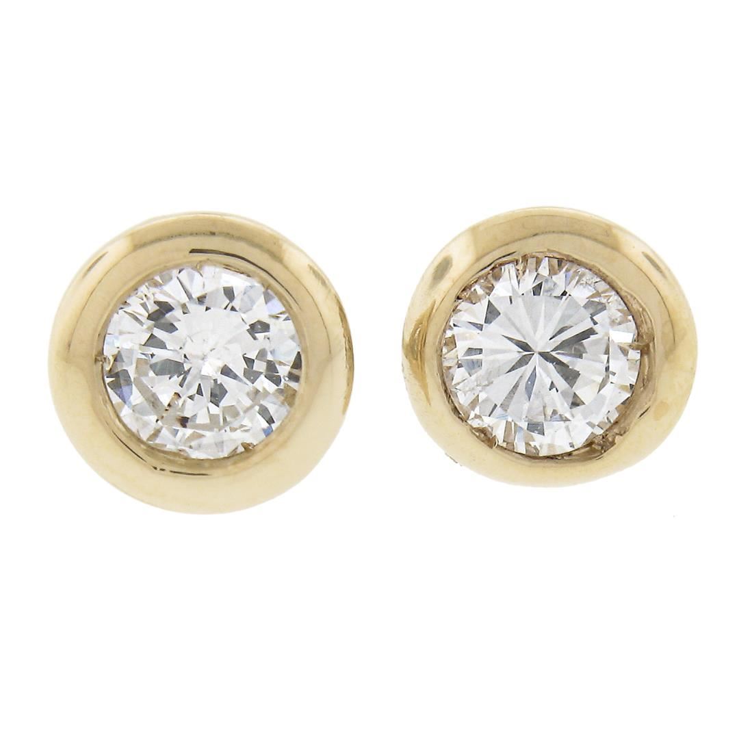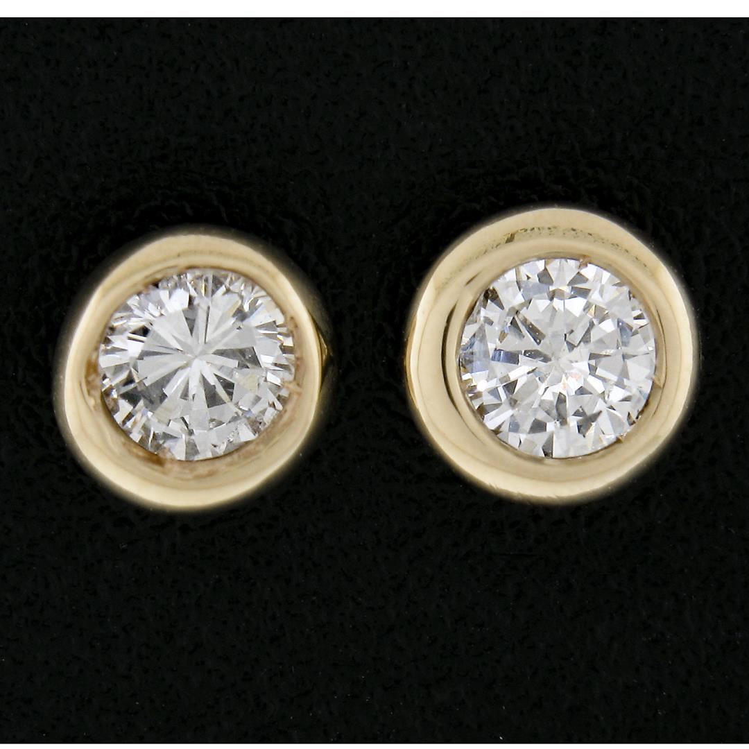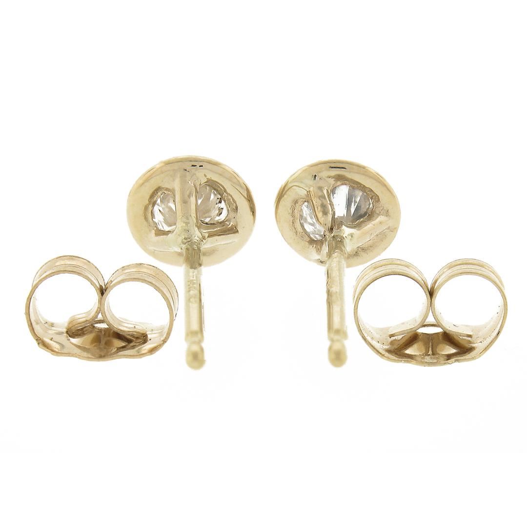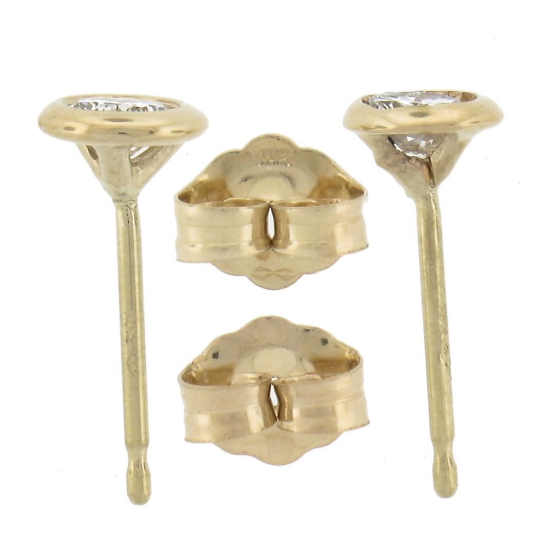 A new pair of 14k yellow gold stud earrings, featuring 2 round cut natrual diamonds (H - VS1 ; 0.27ctw). The earrings measure approximately 5.1mm in diameter and weigh a total of 0.6 grams.