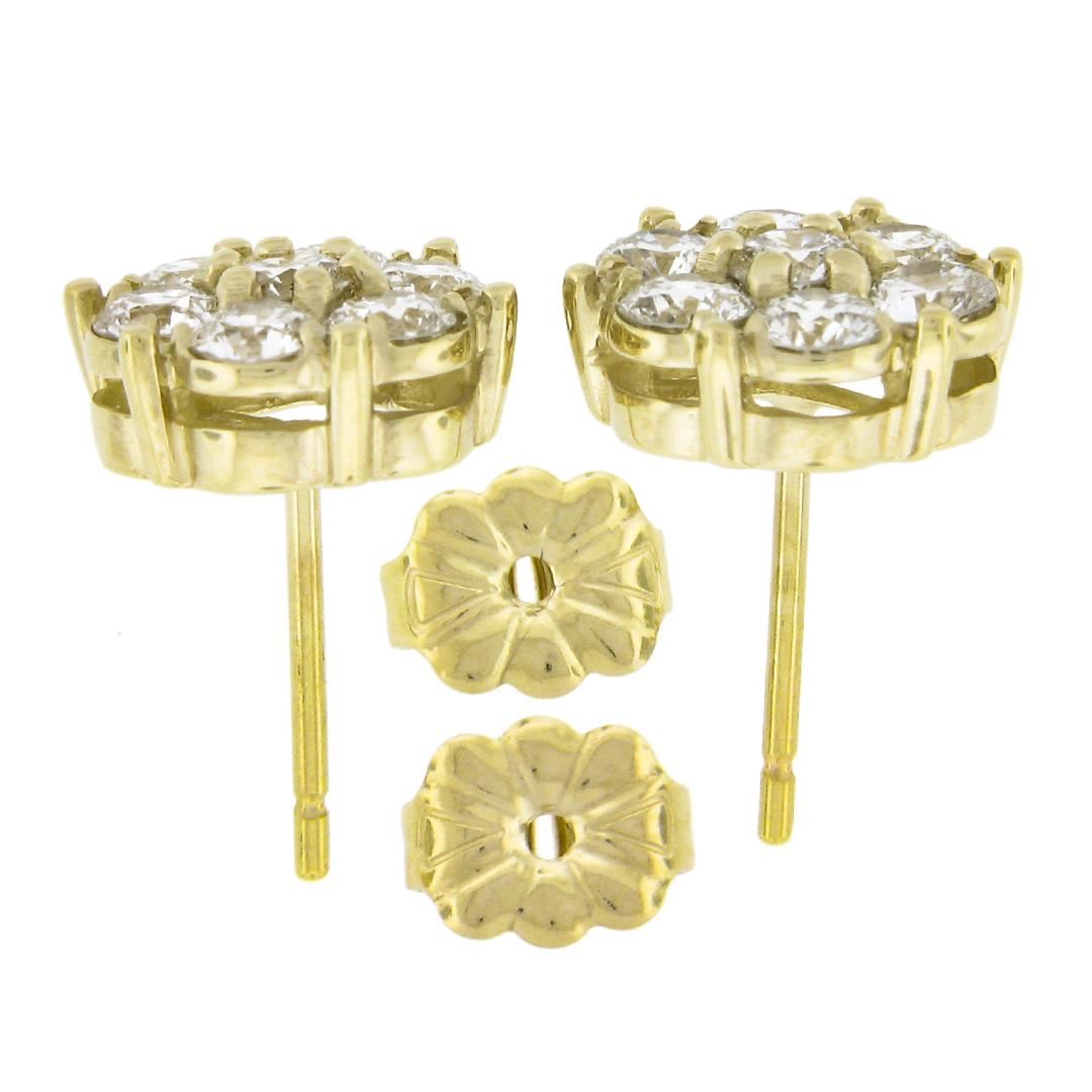 A new solid 14k yellow gold stud pair of earrings, with 14 round cut natural diamonds (H/I - VS1/VS2 ; 1.22ctw). The earrings measure approximately 9.4mm in diameter and weigh a total of 2.33 grams.
