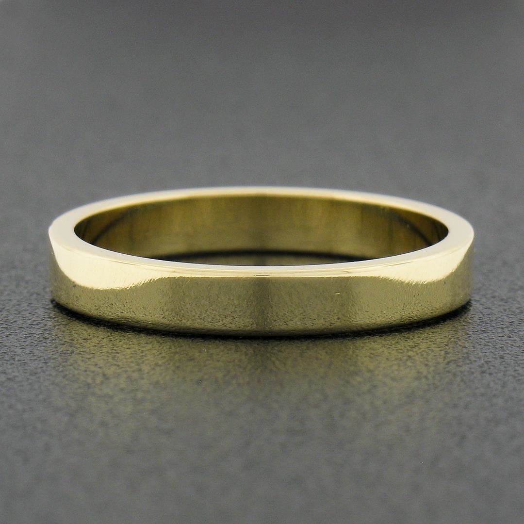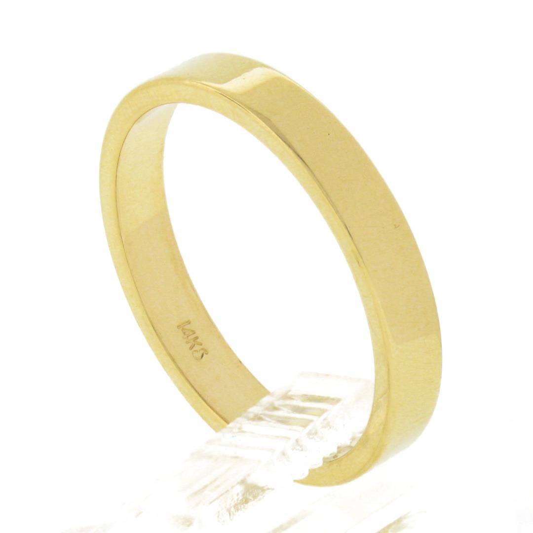 A new solid 14k yellow gold band ring. The ring is size 7.0, weighs a total of 2.84 grams, and measures 3.1mm wide.