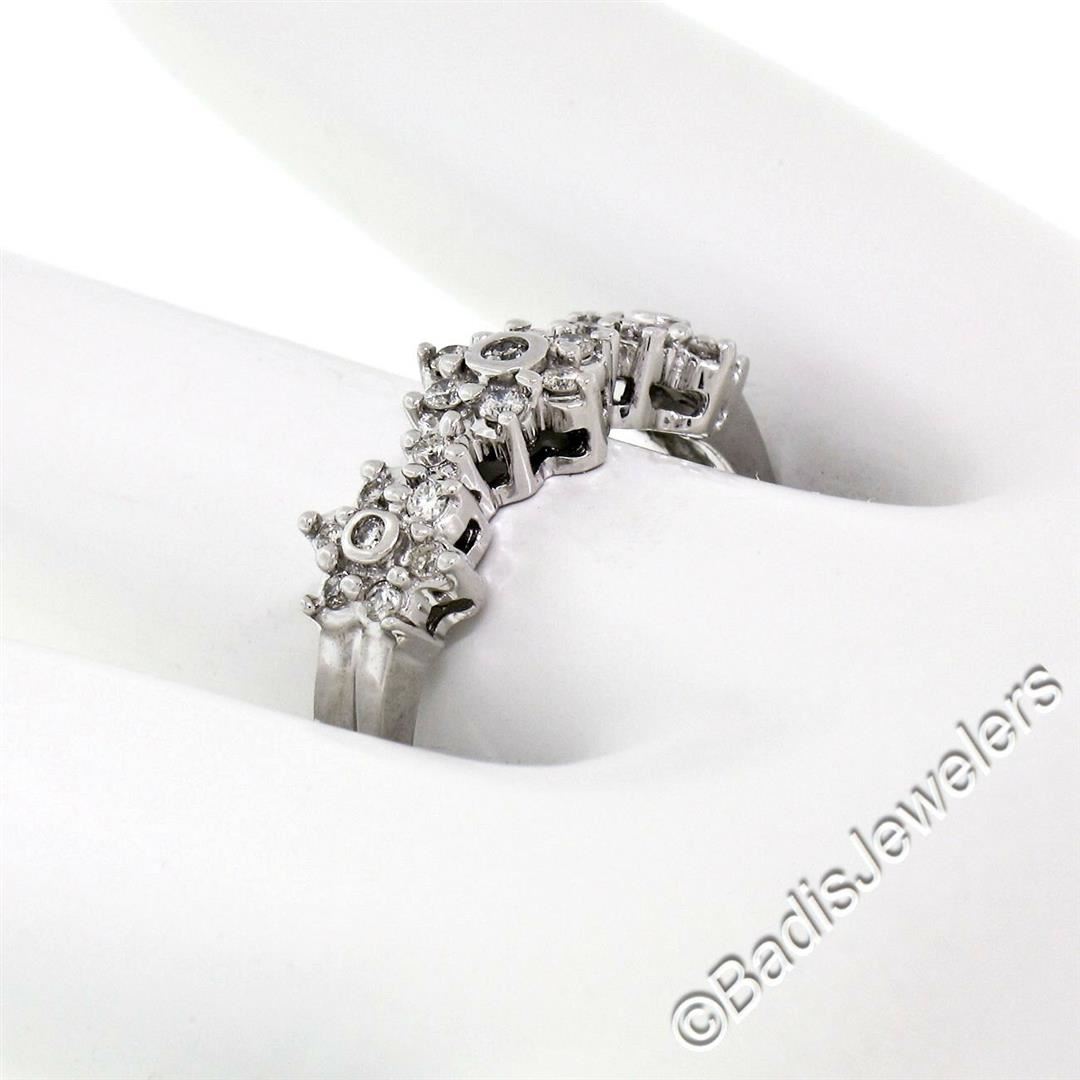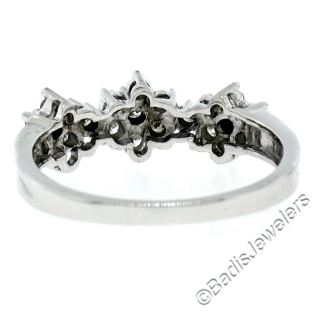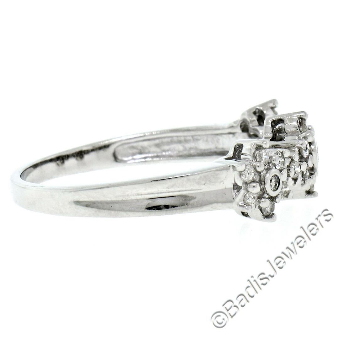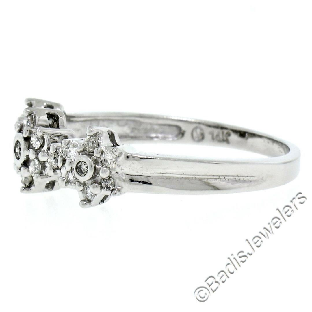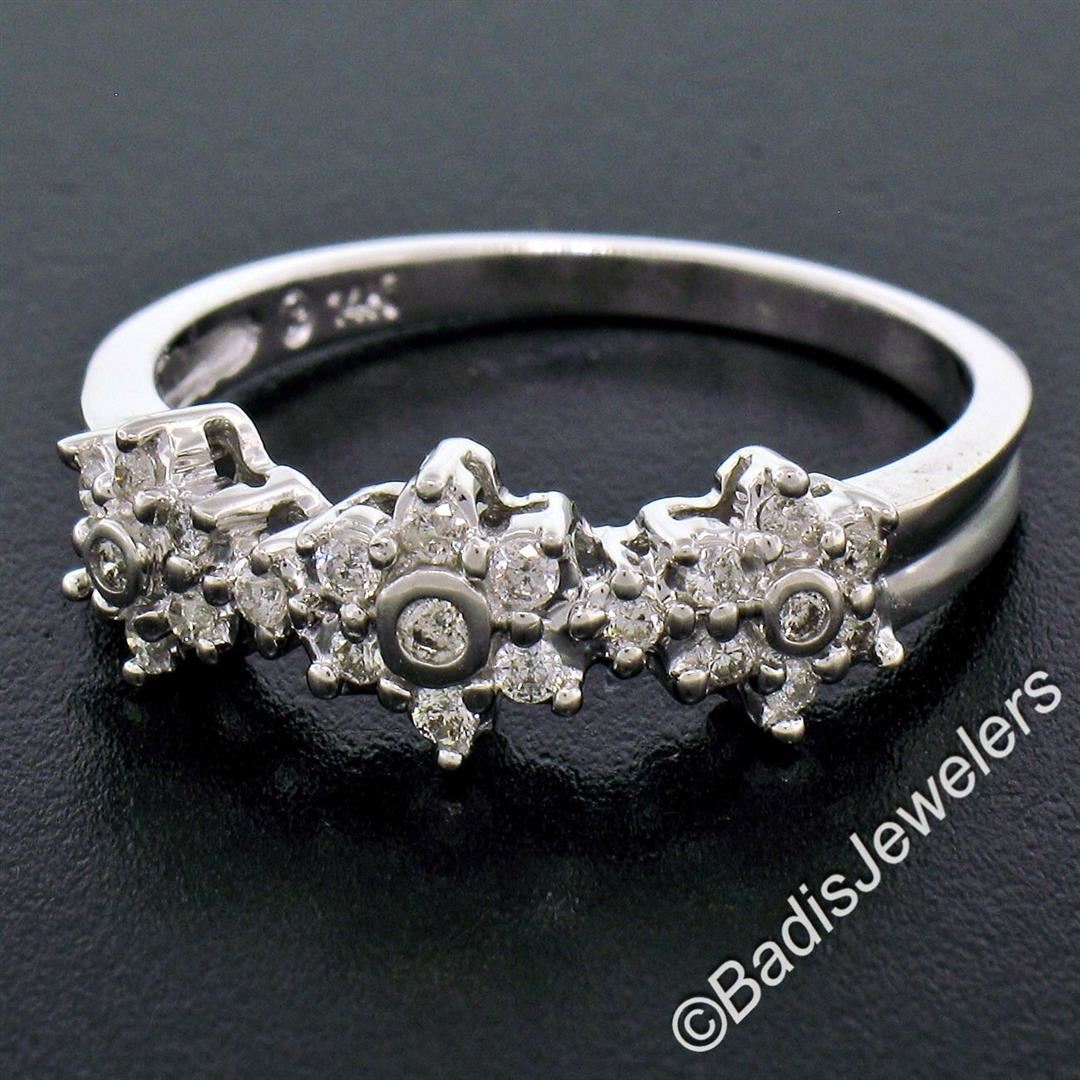 A brand new 14kt white gold triple flower cluster ring set with 0.60ctw of round brilliant diamonds (H/I - SI1/SI2). The ring is size 9.0, weighs a total of 3.48 grams, and measures 7.05mm wide.