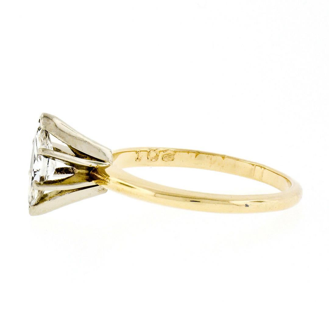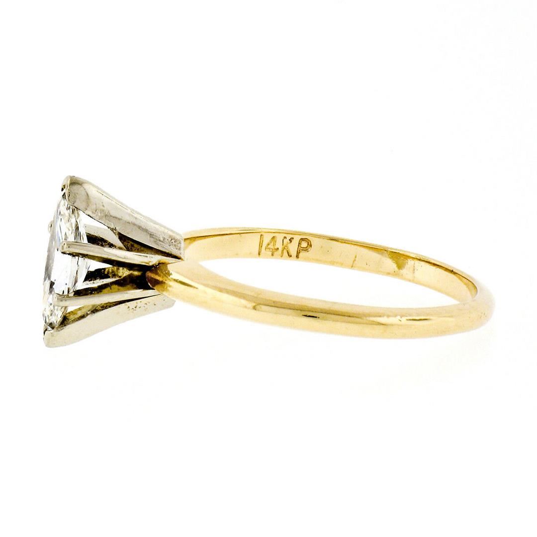 A 14kt yellow gold solitaire engagement ring featuring a 0.41ct marquise cut diamond (G/H - VS1) prong set in a 14kt white gold basket. The ring is size 6.0, weighs a total of 2.28 grams, and measures 9.85mm wide.