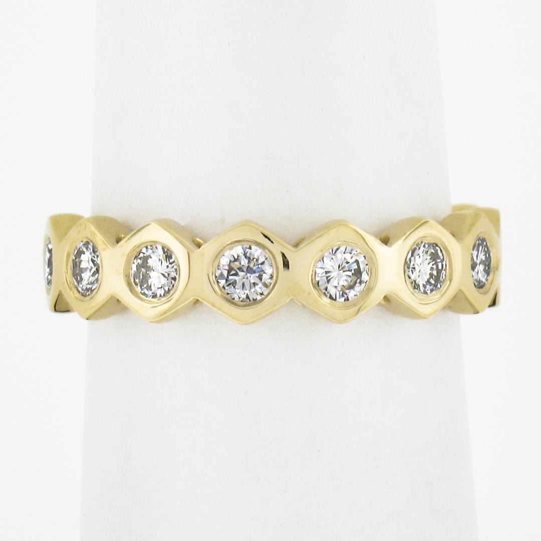 New 18K Gold 0.58 ctw Round Burnish Set Diamond Stackable Hexagon Shape Band Rin