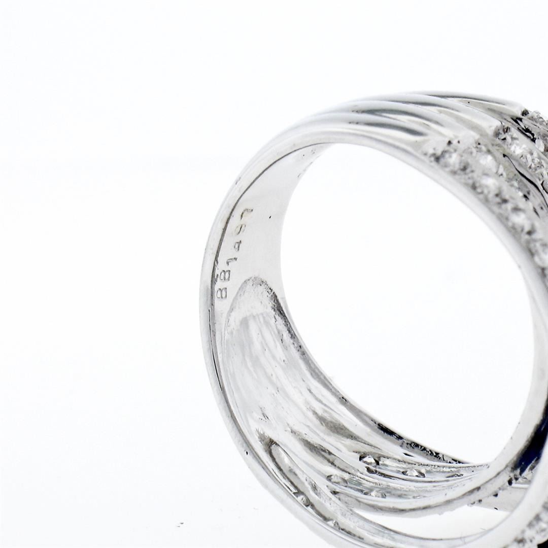 A new solid 18k whte gold square ring, with 16 round brilliant cut natural sapphires (2.50ctw), and 54 round brilliant cut natural diamonds ( F/G- VS1/VS2; 0.65ctw). The ring is size 6.5, weighs a total of 9.07 grams, and measures 17.0mm wide.