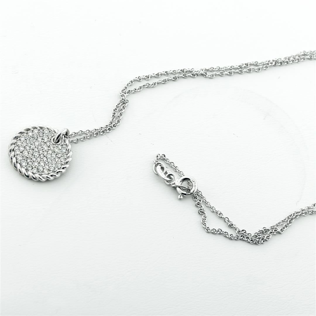 One New 18KT White Gold Ladies Diamond Cable Pendant With 18K White Gold Chain, Pendant Width: 15MM, Chain Measurements: 21" in Length. Condition: Brand New. Pendant Is Set With 77 Stones Pave Setting With Round Cut Natural Diamonds, Total Diamond Weight of .54 ct. Clarity: SI2. Color: G, Total Weight 5.26 Grams. This Chain And Pendant Set Are Brand New And Come With An Appraisal.