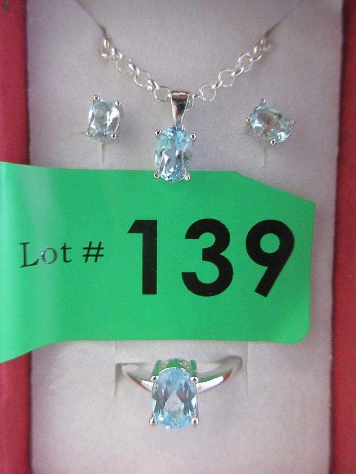 Necklace, ring & earrings. Sterling silver. Oval cut. Retail value $425.