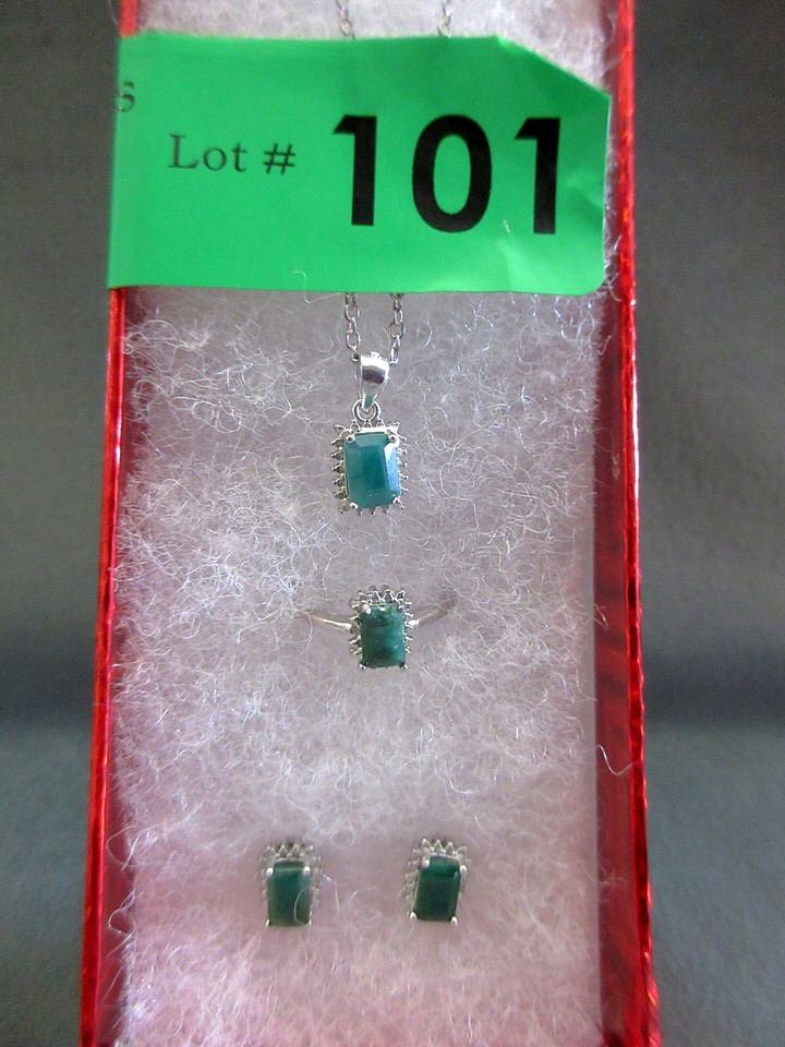 3.75 CT Ring, earrings & necklace. Rich, deep green. Sterling silver. Includes $515 certificate.
