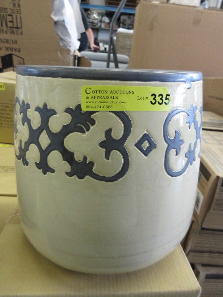 -823. Cream & grey. Largest pot is 12" tall x 12" diameter.