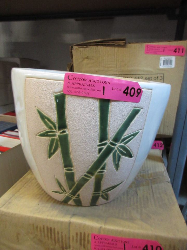 -412. Bamboo print. Largest 9" tall x 9" diameter.