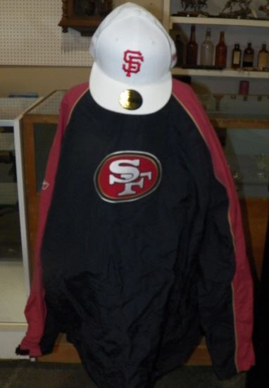 San Francisco 49ers Jacket Men's 2X with 7 3/8" White SF Cap
