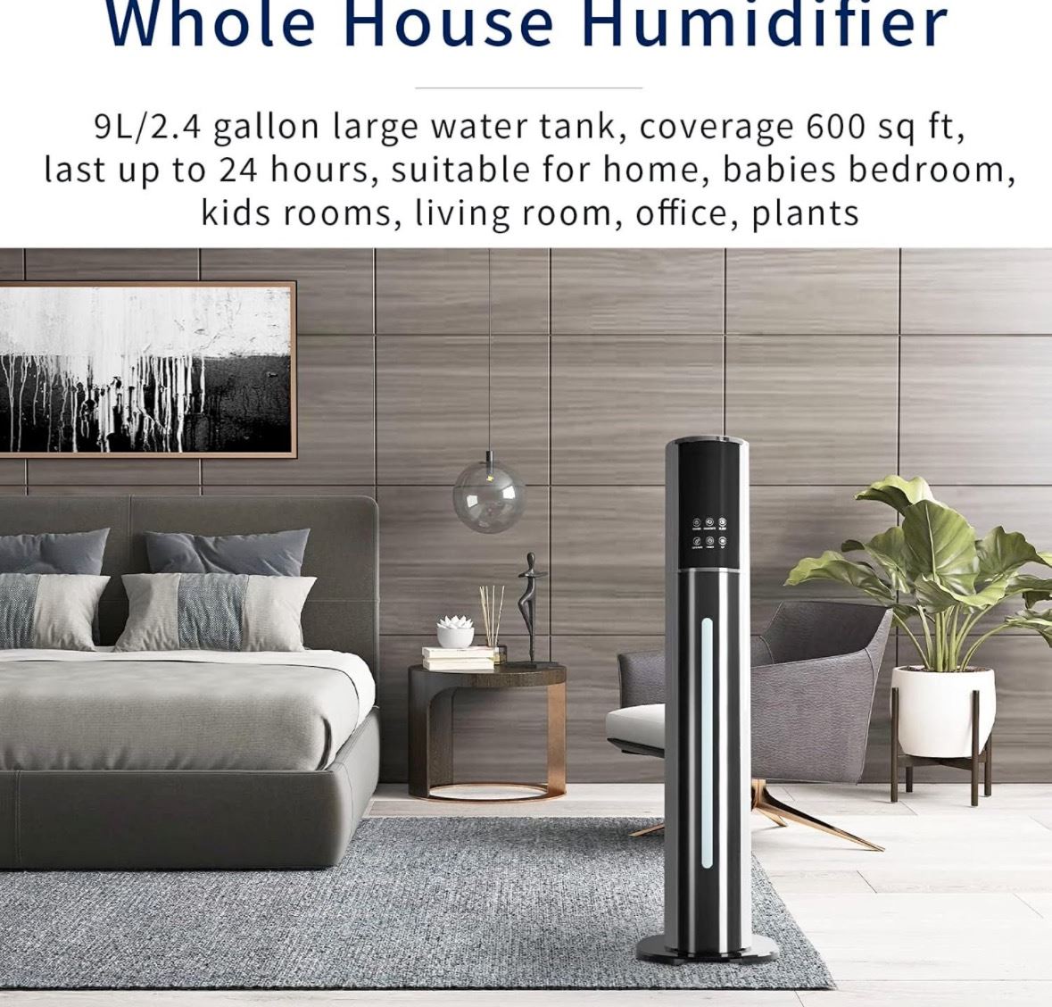 New 9L Ultrasonic Humidifier MNS-A09 Cover Up to 600 sq ft, Cool Mist, Essential Oils Compartment, Adjustable 360° Nozzle
