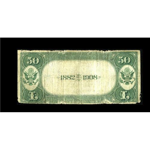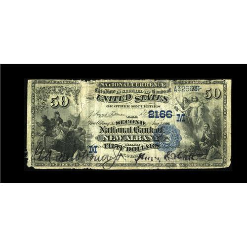 <B>New Albany, IN</B></I> - $50 1882 Date Back Fr. 560 <B>The Second NB</B></I> Ch. #(M)2166<BR>This <B>Fine</B></I> example is an addition to the Kelly census and becomes just the eighth of its type and denomination documented for the entire state. While there is a bit of roughness about the margins, the interior design portions are fully intact and the stamped officers signatures are dark and fully legible. Given the demand for scarce Nationals, we anticipate that this challenging type for the Hoosier State should sell for no less than...<BR><I>From The Bill and Kathy Stella Currency Collection</B></I><BR><BR><b>Shipping:</b> Coin/Currency (<a target="_blank" href="http://www.heritageauctions.com/common/shipping.php">view shipping information</a>)