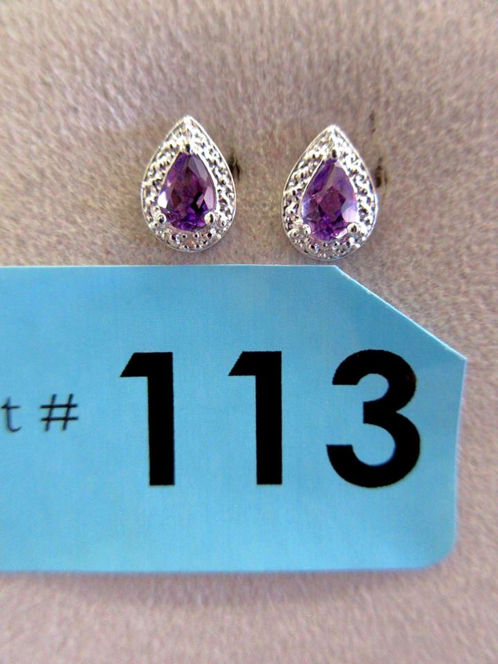 Deep lavender purple, pear cut amethysts. Post & butterfly backs. Sterling silver. Includes $230 certificate.