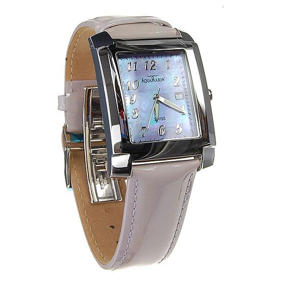 New Aqua Swiss men's dive rated tank style watch in excellent condition with stunning black band and mother of pearl face; retail $1795