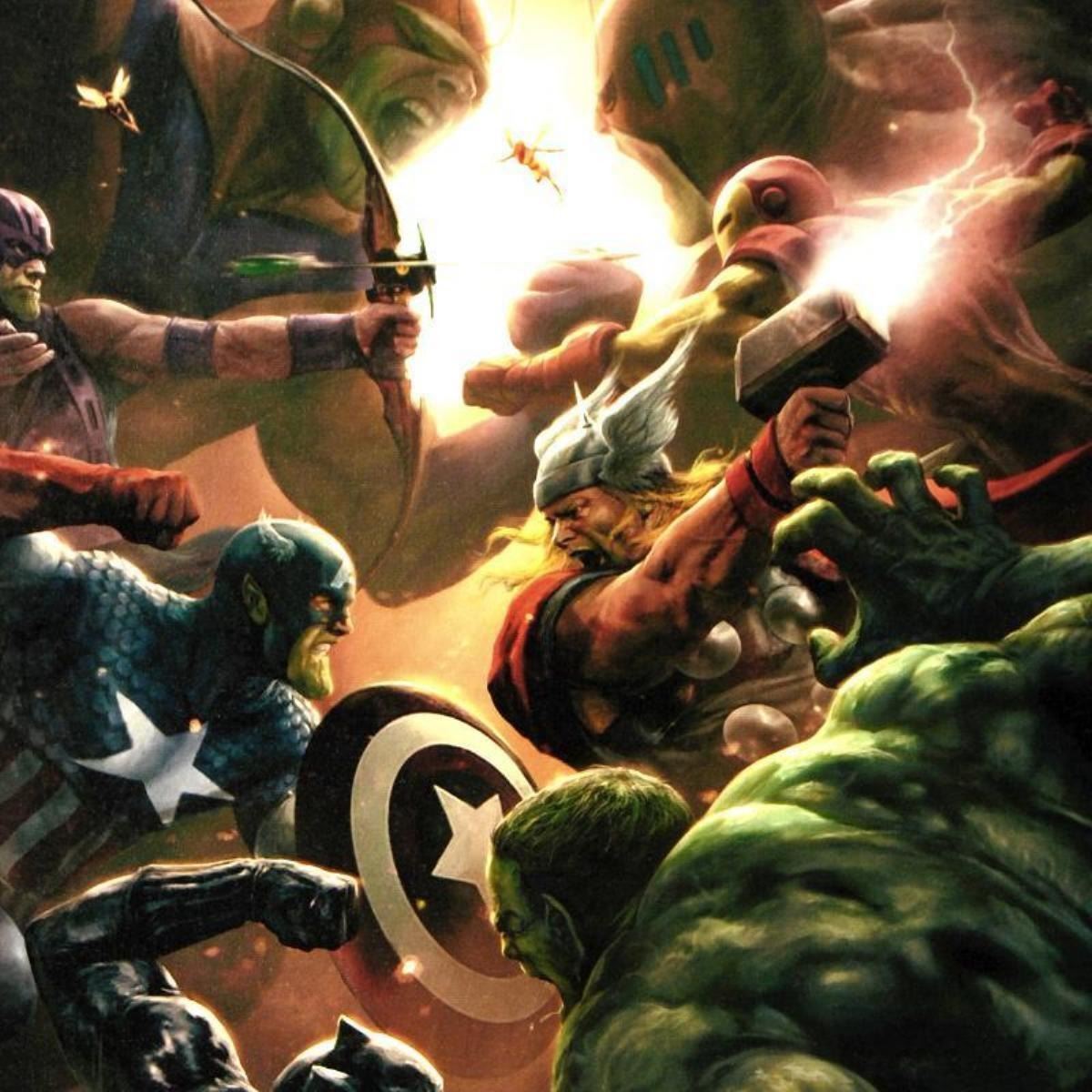 A piece of comic book history, this limited edition, from original art by Aleksi Briclot, depicts Captain America, Thor, Black Panther and many other characters form the Marvel Universe. Aleksi Briclot is a very versatile illustration artist, whose works range from speed painting to rich and detailed digital illustrations. Aleksi Briclot works in the videogame industry as a concept artist and art director. He is also an illustrator for books, RPG books, magazines and, of course, comic books. "New Avengers #43" is a limited edition numbered giclee on stretched canvas by Aleksi Briclot presented by Marvel Comics. This piece comes gallery wrapped. Includes Certificate of Authenticity! Measure approx. 18" x 27" (image); 1.5" (depth).