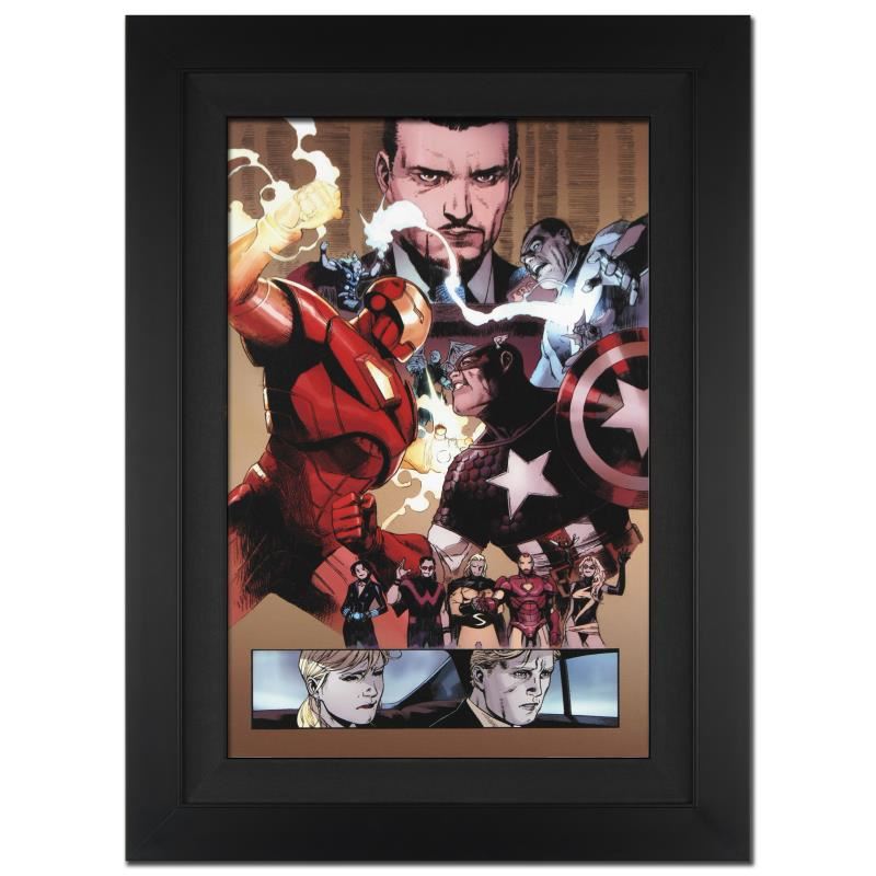 A piece of comic book history, this limited edition, from original art by Billy Tan, depicts Wolverine, Spider Woman, Captain America, and Ronin. Billy Tan grew up in Malaysia and moved to the United States in 1989 to study business at the University of Kentucky. He began working as a penciler for Image Comics in the 1990s. Tan became the regular artist of the Marvel Comics series Uncanny X-Men in 2006. In 2008, he was invited to draw New Avengers Secret Invasion tie-in issues #41 and 43-44. "New Avengers #48" is an extremely limited edition giclee on canvas by Billy Tan presented by Marvel Comics, hand signed by the great Stan Lee and numbered out of only 10! This piece comes custom framed and ready to hang. Includes Certificate of Authenticity! Measures approx. 25" x 34" (with frame); 18" x 27" (image).