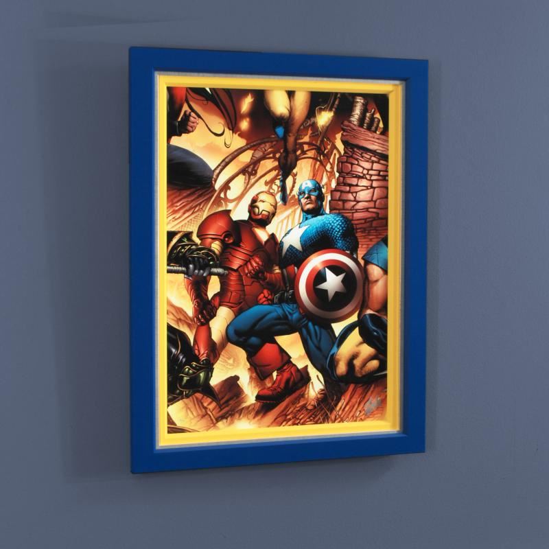 A piece of comic book history, this limited edition, from original art by Bryan Hitch, depicts the classic Captain America and Iron Man. British artist Bryan Hitch was inspired by comic books at an early age. Not only has Hitch worked on the The Avengers, Captain America, and She-Hulk, he also did the character design for the Ultimate Avengers and Ultimate Avengers 2 animated films. "New Avengers #6" is an extremely limited edition giclee on canvas by Bryan Hitch presented by Marvel Comics, hand signed by the Great Stan Lee (1922-2018) and numbered out of only 10! This piece comes custom framed and ready to hang. Includes Certificate of Authenticity! Measures approx. 25" x 34" (with frame); 18" x 27" (image).