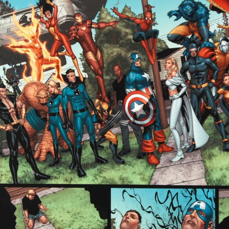 A piece of comic book history, this limited edition, from original art by Steve McNiven, depicts characters from the New Avengers, X-Men, Fantastic Four, and Inhumans. Known for being the penciller of the Marvel mini-series "Civil War," Steve McNiven has also contributed art to Spider-Man and Wolverine, among others. "New Avengers #8" is a limited edition numbered giclee on canvas by Steve McNiven presented by Marvel Comics. This piece comes gallery wrapped. Includes Certificate of Authenticity! Measure approx. 24" x 18" (image).