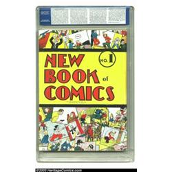 New Book of Comics #1 (DC, 1937) CGC VF 8.0 Off-white pages. This is the first regular-sized comic annual, and the second DC annual. It contains reprints from New Comics #1-4 and More Fun #9, with art by Joe Shuster, Shelly Moldoff, and Sheldon Mayer. Gerber describes this comic as "rare," and estimates that only 11 to 20 copies still exist. Overstreet also calls this book "rare," and does not even supply values for grades over Very Fine. The current CGC census shows five certified copies, with only one copy grading higher than this one - at a surprising NM 9.4 (someone tell Overstreet!). In any case, this is a top copy of an important comic. Overstreet 2003 VF 8.0 value = $13,000. Important notice: Heritage usually auctions material at the rate of 200-250 lots per hour. On some occasions eBay Live bid software or the Internet may not be able to keep up with the pace of the auction. We recommend placing a realistic absentee bid now as insurance to avoid disappointment. Occasionally the auctioneer may eliminate or reject an eBay Live bid, and the auctioneer may also reopen a lot after the close of the eBay live bidding (usually because we missed an audience bid), and may reject your bid even if it shows you as the winning bidder. By bidding via eBay Live, you agree that Heritage may award the lot to another bidder at its sole discretion under the circumstances described above or any other reasonable circumstances. Also please note that all Heritage lots purchased through eBay Live carry a 20% Buyer's Premium. Please make sure you read the Terms and Conditions before you bid.