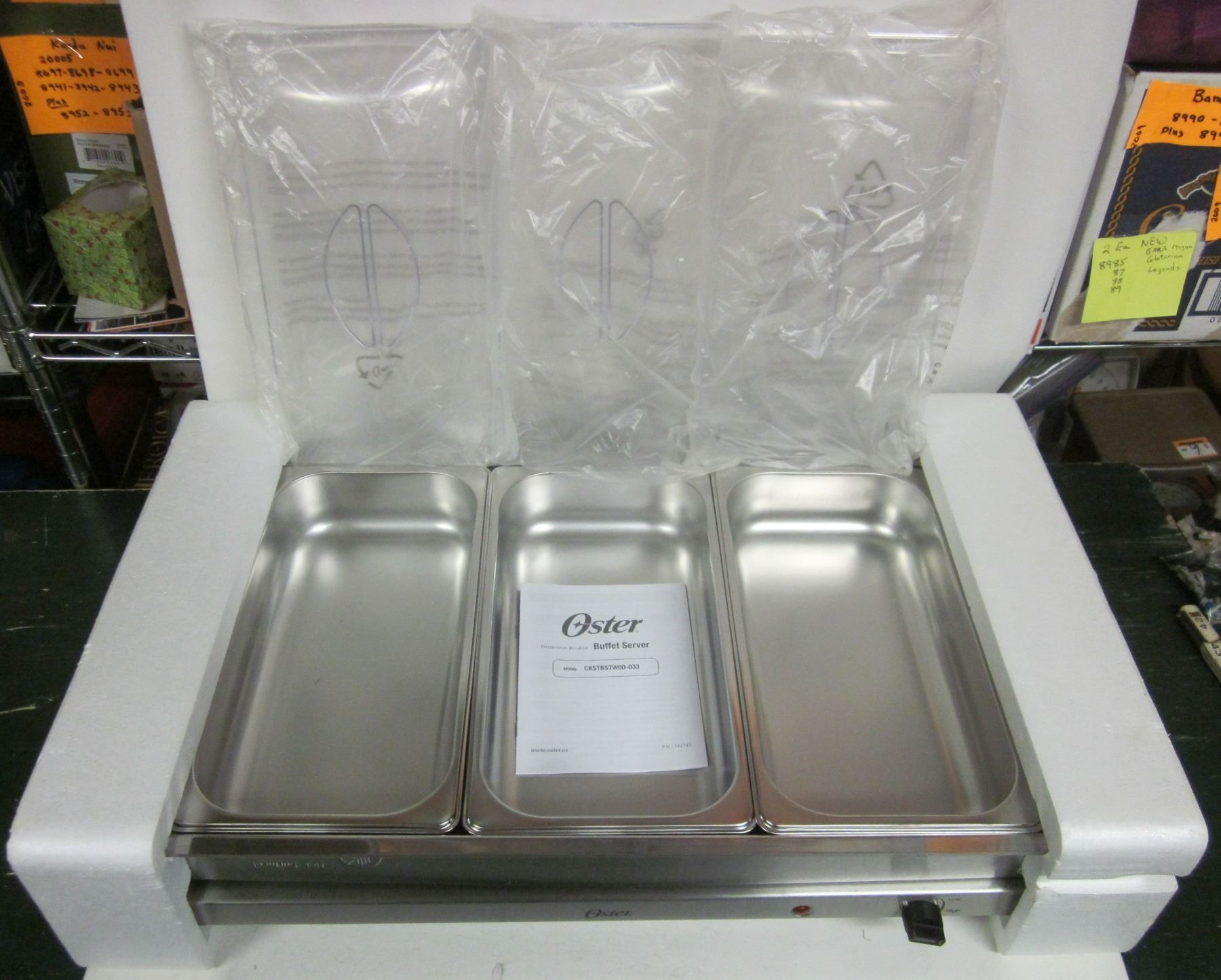 New Boxed OSTER triple buffet server/warming tray - inst.