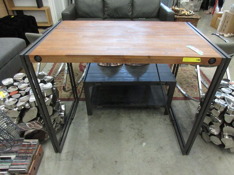48" x 29" x 37" tall. Solid Acacia Wood & Metal. Contemporary Design with Industrial Accents.