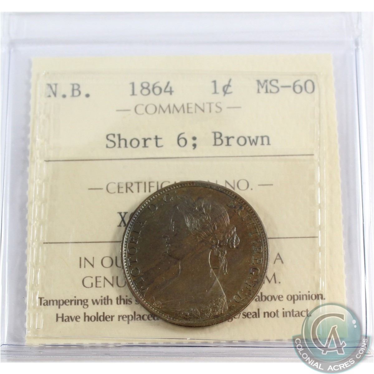 New Brunswick 1-cent 1864 Short 6 ICCS Certified MS-60 Brown