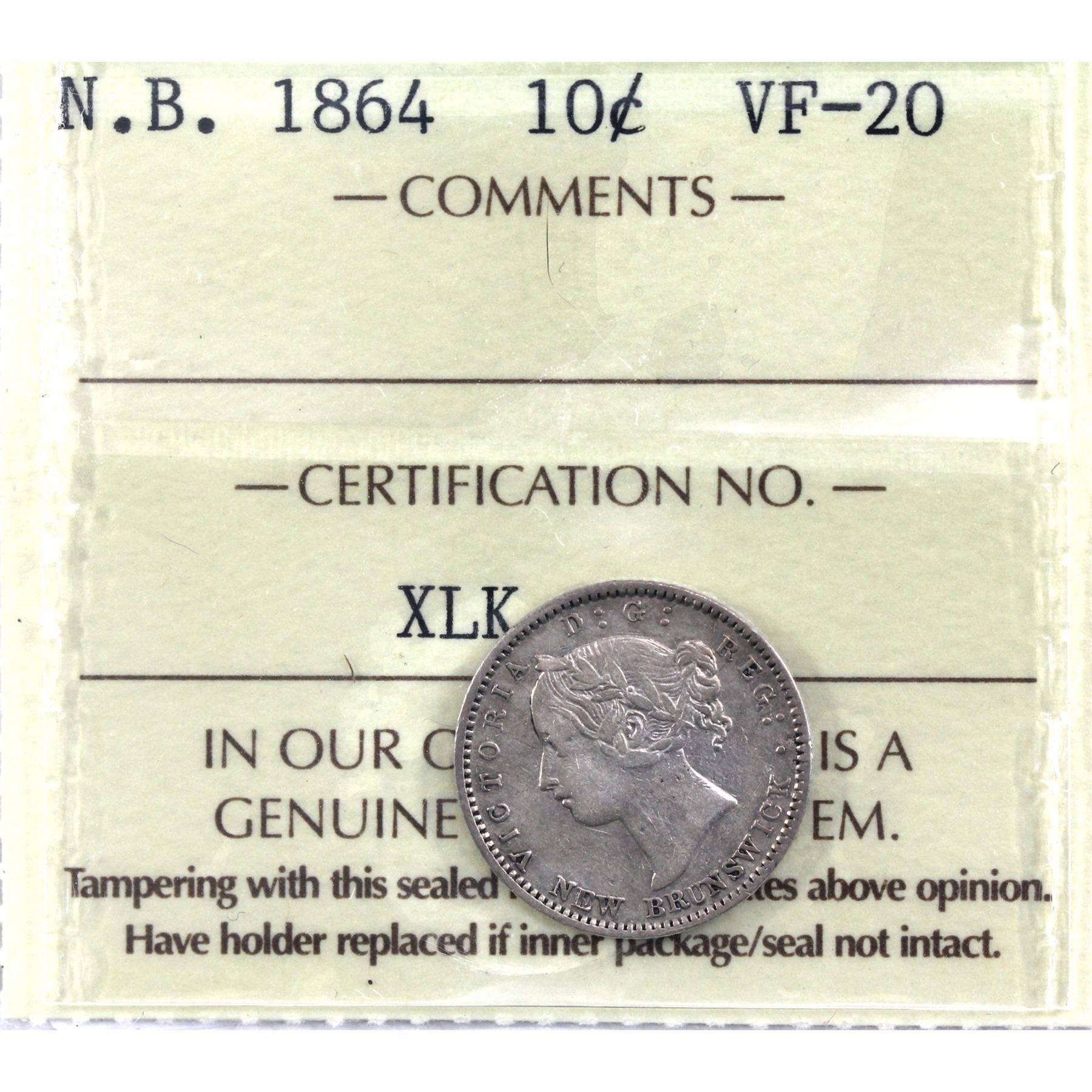 New Brunswick 10-cent 1864 ICCS Certified VF-20.