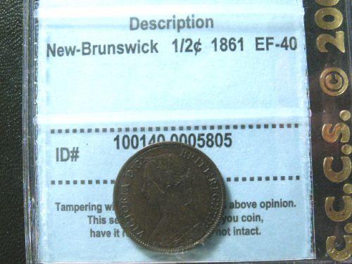 New Brunswick 1861 1/2¢ CCCS EF40. Dark chocolate example.