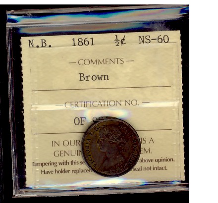 New Brunswick 1861 1/2¢ ICCS MS60, Brown